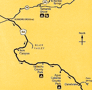 California Route 78 runs east to west through the middle of the park while County Routes S1, S2, S3 and S22 links the various sections of the park.