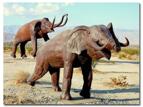 Borrego Springs Metal Art Sculptures tour. What you will see - Dennis Avery, landowner of Galleta Meadows Estates in Borrego Springs, California envisioned the landscape of his starkly beautiful desert property enhanced with the incredible steel welded sculptures of artist and welder Ricardo Breceda, based in Perris, California. About 130 of Breceda's metal sculptures are now located in the Borrego Springs area. A round trip of about 22 miles on mostly paved roads allows you to see them all. Just a few are located on dirt roads, but the roads are negotiable by most cars.
