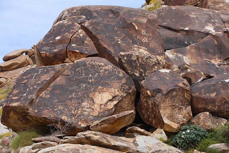 The petroglyphs go 40 to 50 feet below the current sand level in the wash. These were some of the first petroglyphs and have been buried for hundreds of years. Most of the petroglyphs are not translated, and only a few of the more common ones have been understood.