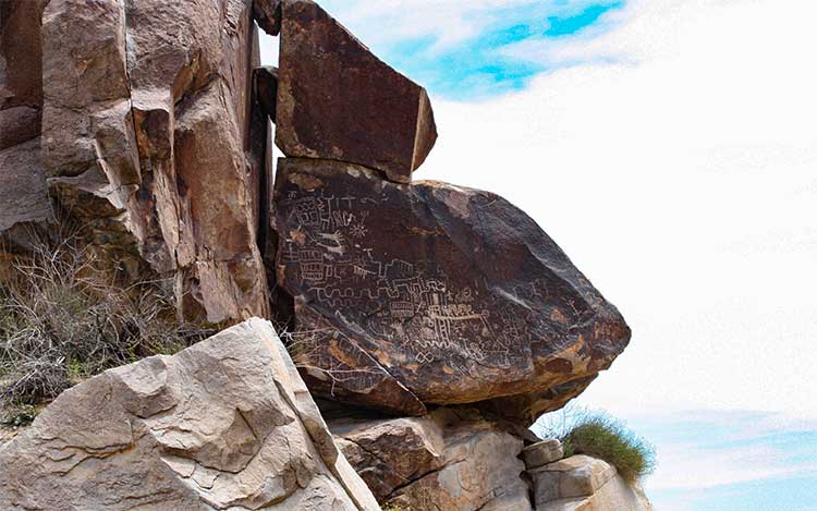 To get to to Grapevine Canyon use the starting point of Davis Dam or Laughlin, Nevada; drive up Nevada Highway 163 about 6 miles to the Christmas Tree Pass turnoff.