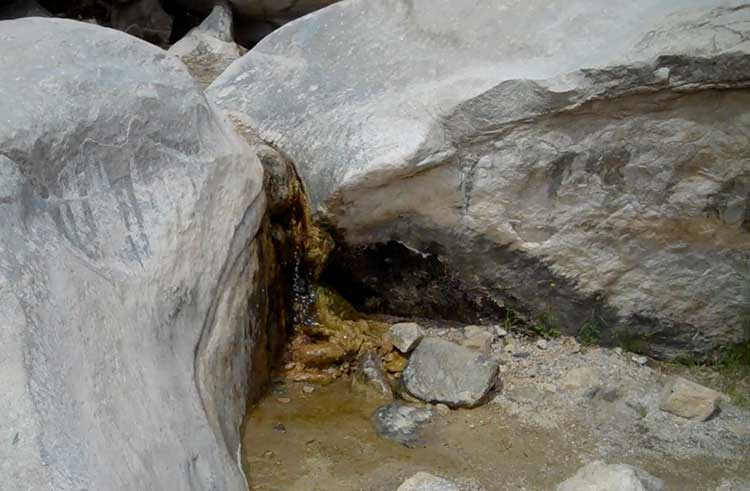 A slow stream of water trickled from the rocks at the base of Grapevine Canyon, ran a few feet and disappeared into the sand. Many of the Indians gathered here for water and meetings. The signs on the rocks tell many stories of the past and give instructions on the local conditions.
