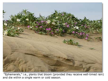 Third, over time, both the perennials and the ephemerals have developed numerous and often complex strategies and adaptations for surviving in the desert.