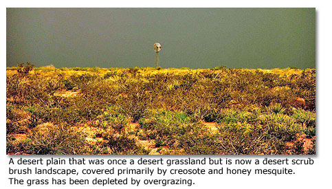 “Historically, in the Chihuahuan Desert, most of the range was grazed extensively; it continues to be grazed even though plant and livestock production is low. As a result, desertification resulting in conversion of desert grassland to desert shrubland since the 1850’s has been well documented ”
