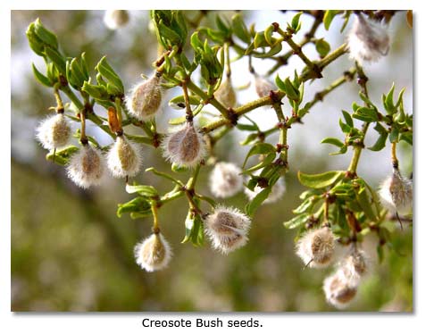 Unlike most other desert shrubs, the Tarbush produces new growth in midsummer, during the monsoon rains, and it blooms, not in the spring, but in the late fall. It produces densely hairy seeds during the winter, releasing them for distribution by the winds of spring. Aggressive and tenacious, the Tarbush has helped spearhead the shrubs’ invasion of the Chihuahuan Desert grasslands, and it “frustrates attempts to convert such rangeland back to grassland,” according to the FEIS Internet site.