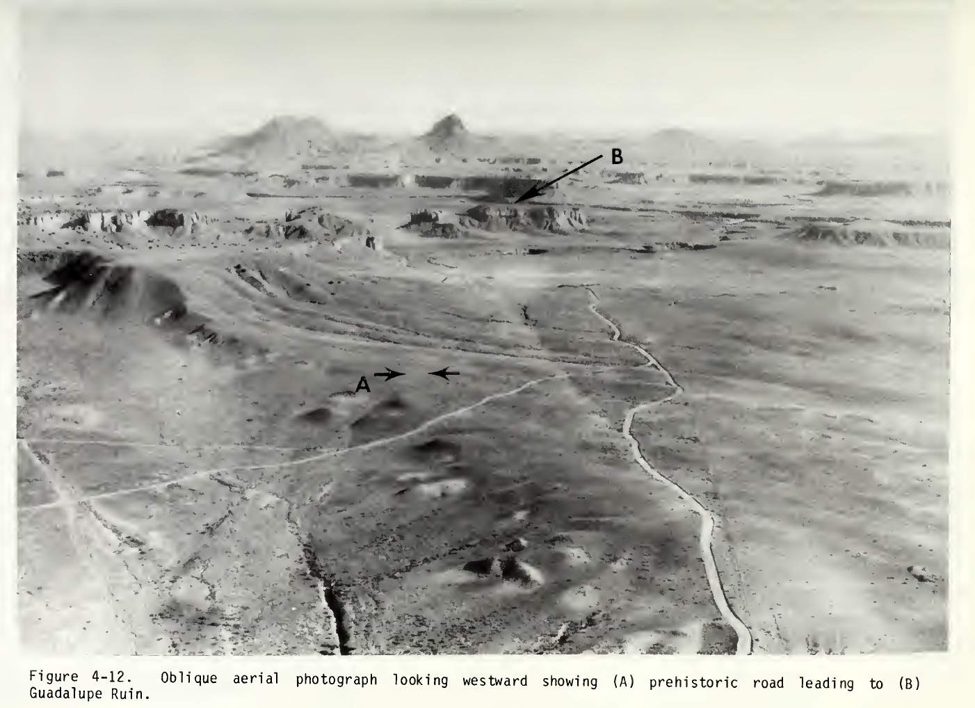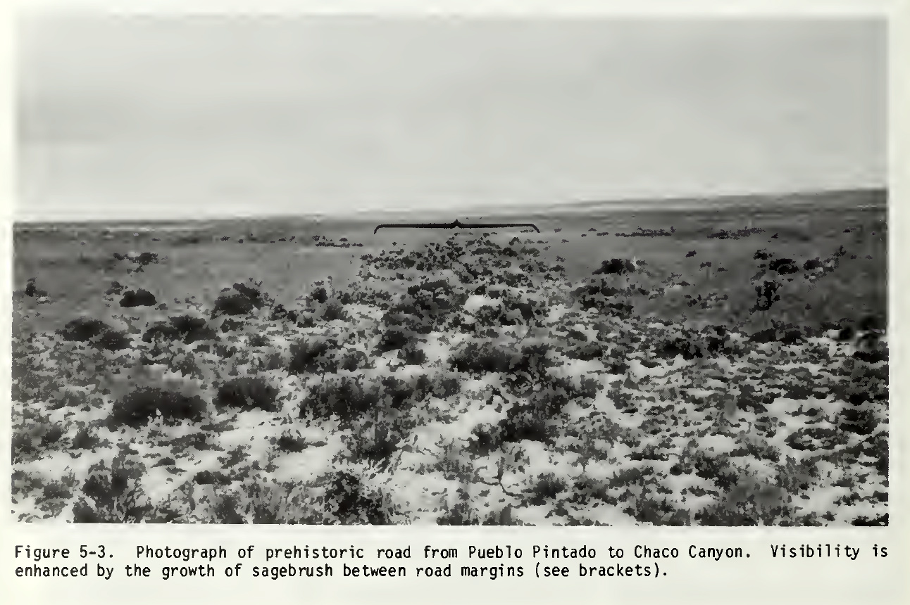 Prehistoric road. From Chaco Roads Project Phase 1, A Reappraisal of Prehistoric Roads in the San Juan Basin 1983. BLM, Chris Kincaid.