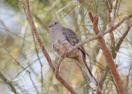 The Anza-Borrego Desert Christmas Bird Count (CBC) was held under sunny skies on December 15, 2013, with 74 participants recording 119 species and 13,271 total birds. In comparison, all-time high figures were 134 species in 2010 and 14,140 total birds in 2009. This year’s honors for “coolest rare bird” goes to two INCA DOVES from two separate locations. This species has only been recorded here seven previous times, and only once before on the CBC. Two WOOD DUCKS, a PLUMBEOUS VIREO, two TOWNSEND’S WARBLERS and a GREEN-TAILED TOWHEE were also unusual.
