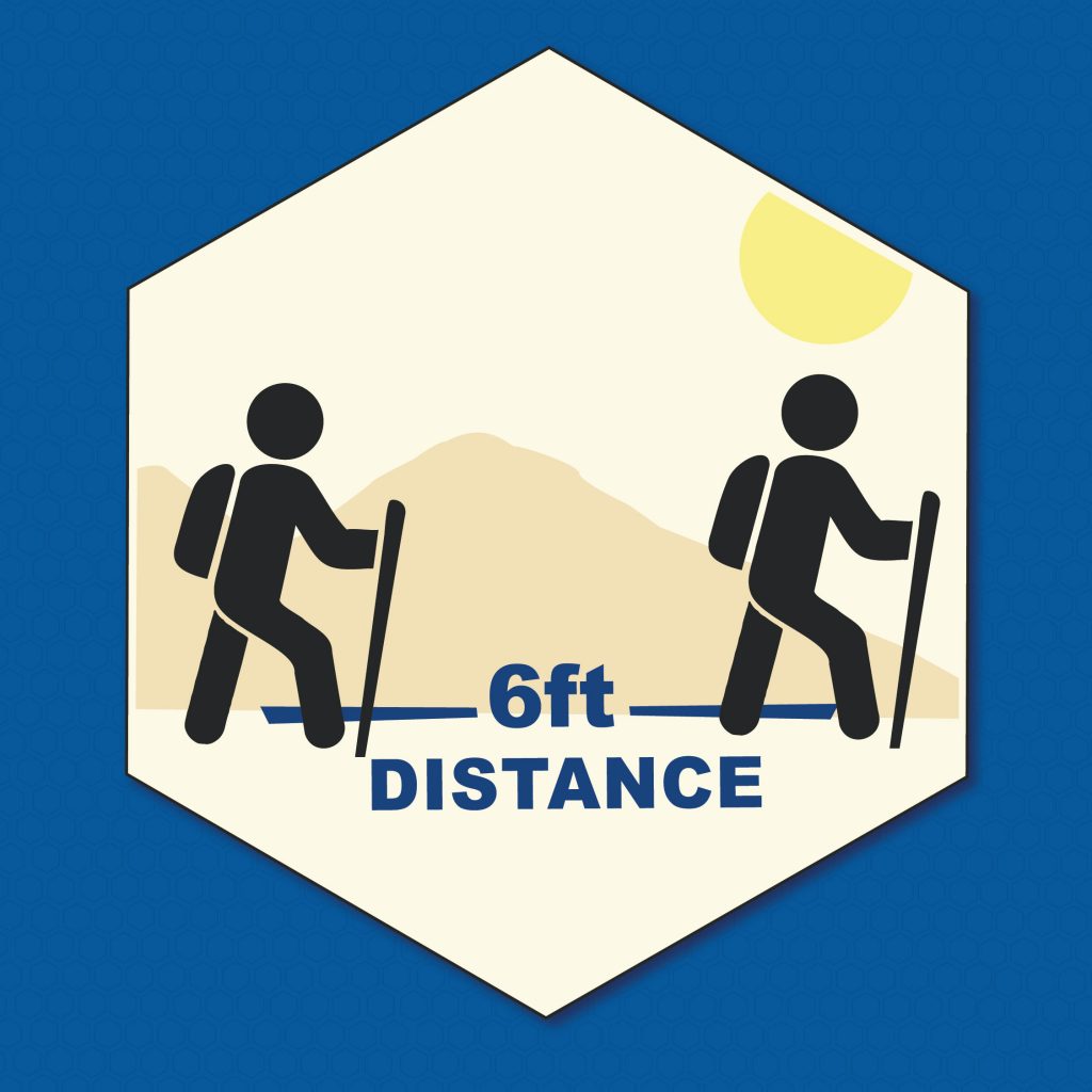 - Always maintain a physical distance of 6 feet or more when recreating in the outdoors. If you cannot maintain physical distancing, leave the park.