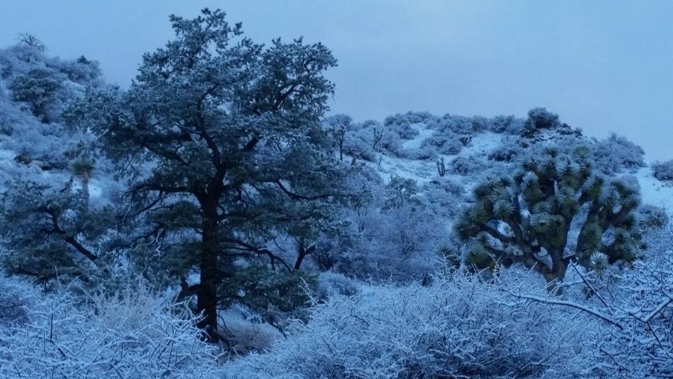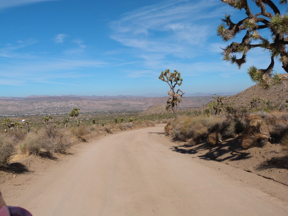It’s a beautiful, scenic drive; 14 miles from KFC to the Peak directly, but two side trips to Upper and Lower Covington Flats will add some time to your trip. This is one of the two areas that I know of that has the largest Joshua trees I’ve ever seen. I’ve seen deer cross this road, and bighorn sheep in the surrounding hills. If you’re in a rush this trip can be done in just over an hour from start to end, but if you savor the desert it can take all day.