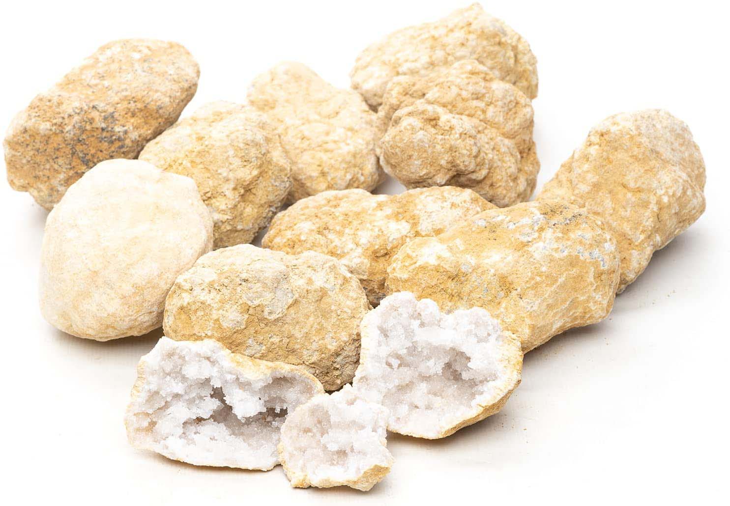 Opening a geode is a thrilling process that unveils the hidden wonders within these spherical marvels. First, place the geode in a cloth bag or towel to prevent flying debris. Using a rock hammer or chisel, carefully tap around the circumference of the geode until it cracks open. Wear goggles to protect your eyes. Take your time and apply gentle pressure to avoid shattering the crystals inside. Once broken, you’ll reveal the breathtaking crystals lining the inner cavity. You can use a rock saw to cut open the geodes if you have a rock saw available.