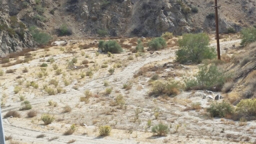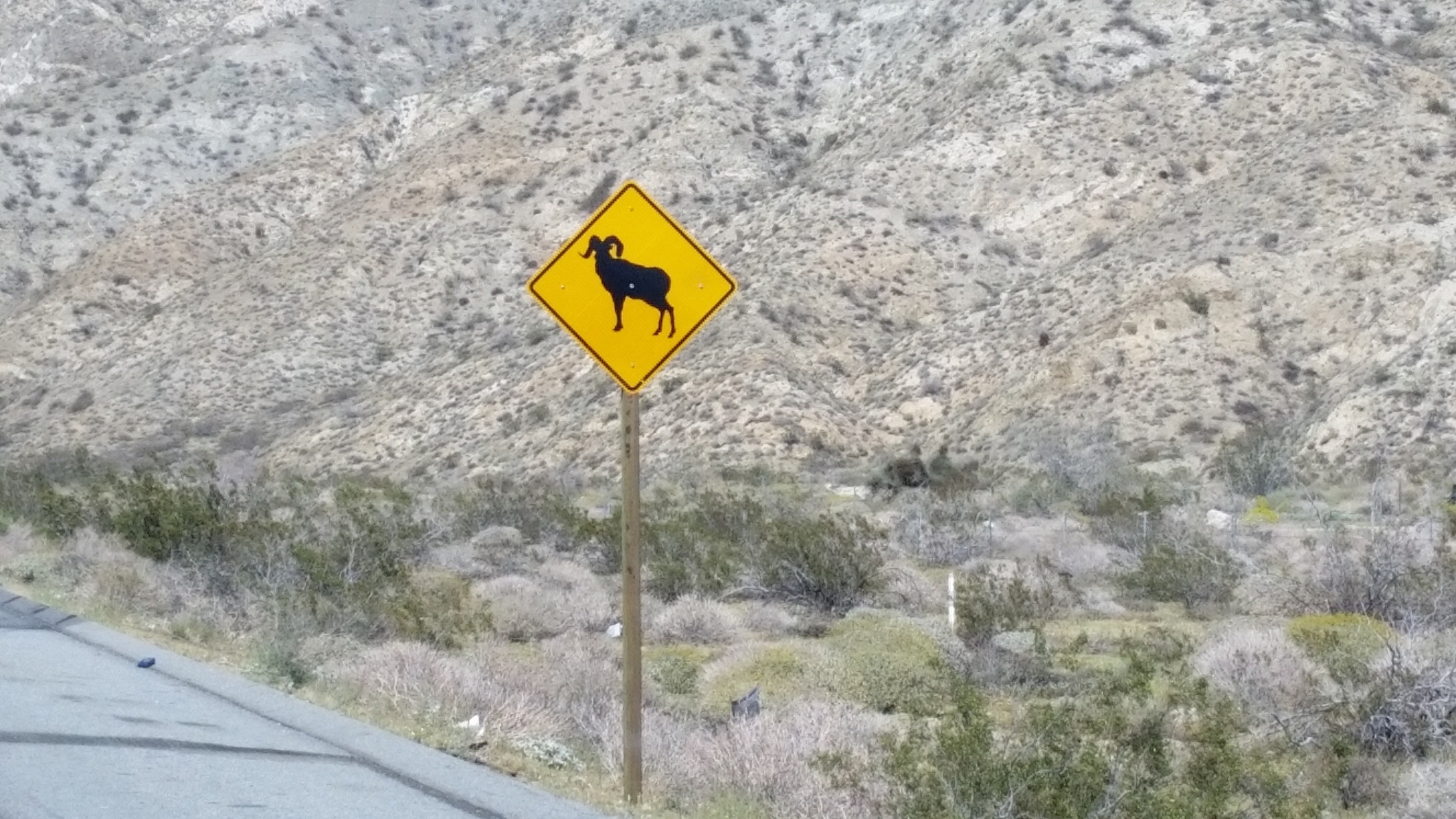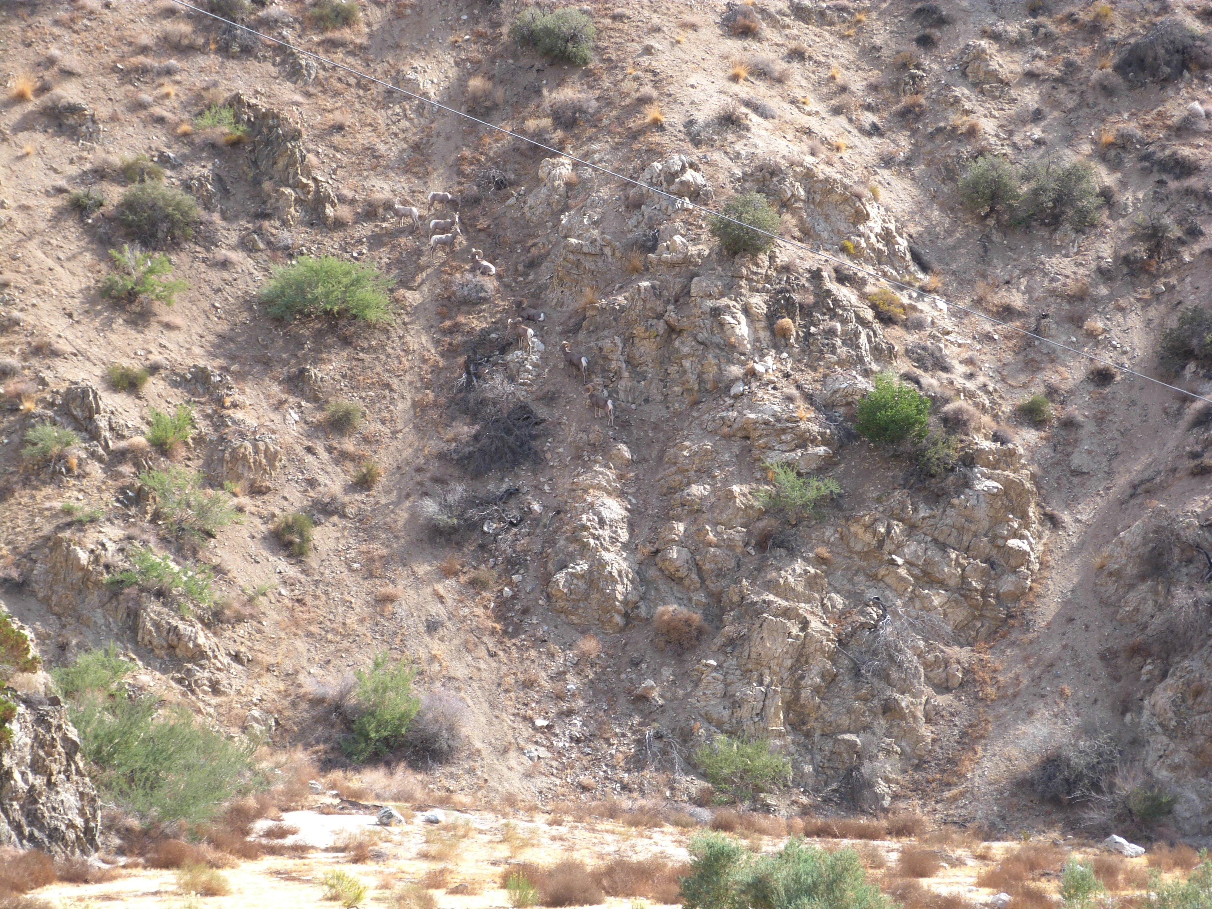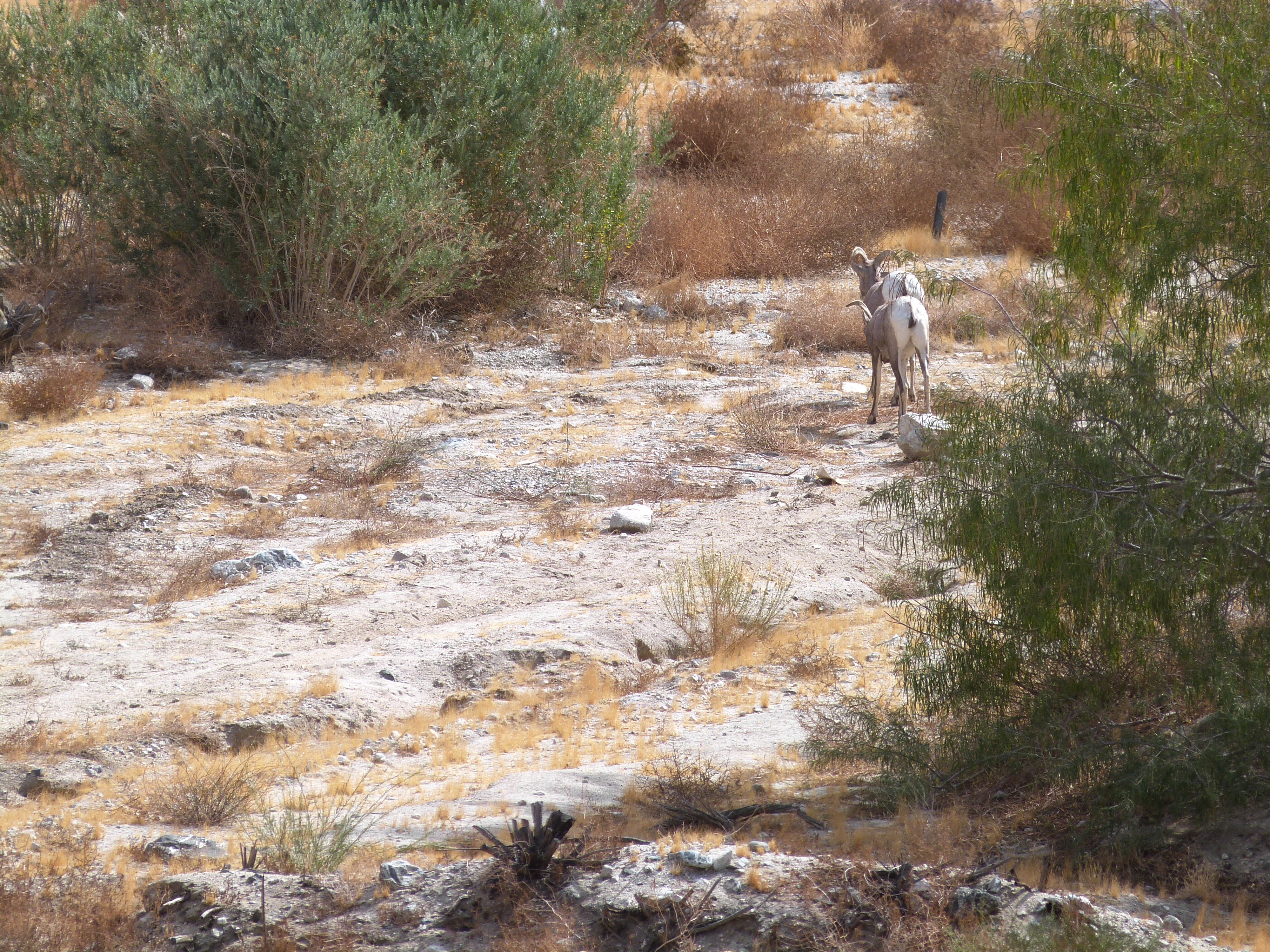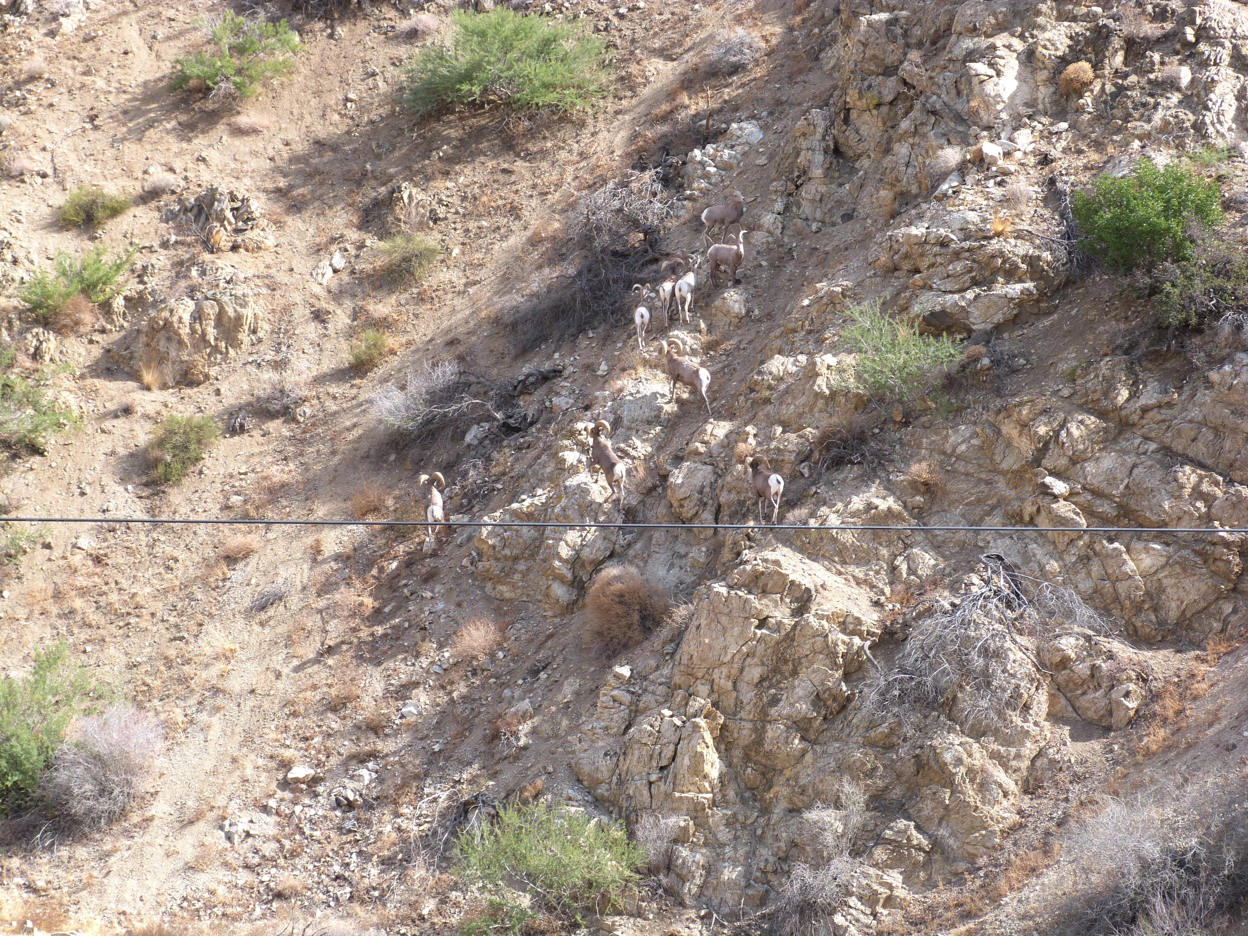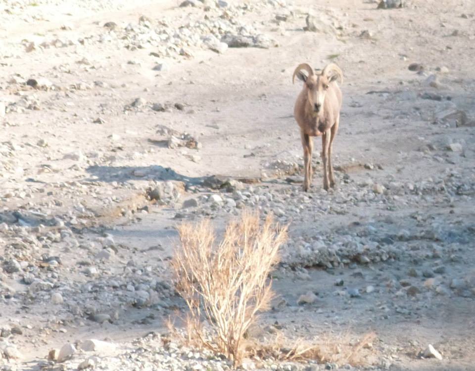 When I was a teenager working at the Yucca Valley Kentucky Fried Chicken, the owner, Mr. Shisler, once told me a story. He was driving down the Morongo Grade on Highway 62 between Yucca Valley and Desert Hot Springs when a bighorn sheep ran next to his car for a few seconds, then darted up the mountains. A few years later on a field trip in a class I was taking at College of the Desert, we traveled up Highway 74 between Palm Desert and Idyllwild and saw many agave sprouts that our professor told us had been eaten by bighorn sheep. But I still had never seen one in the wild.