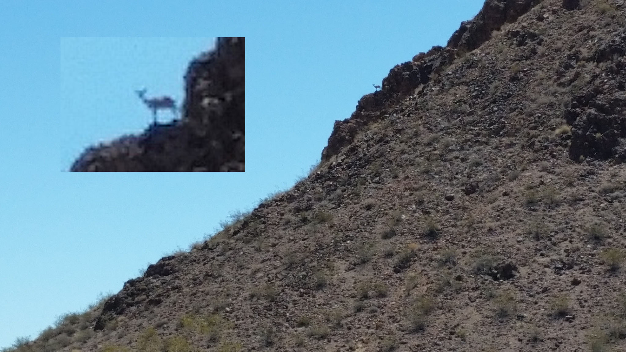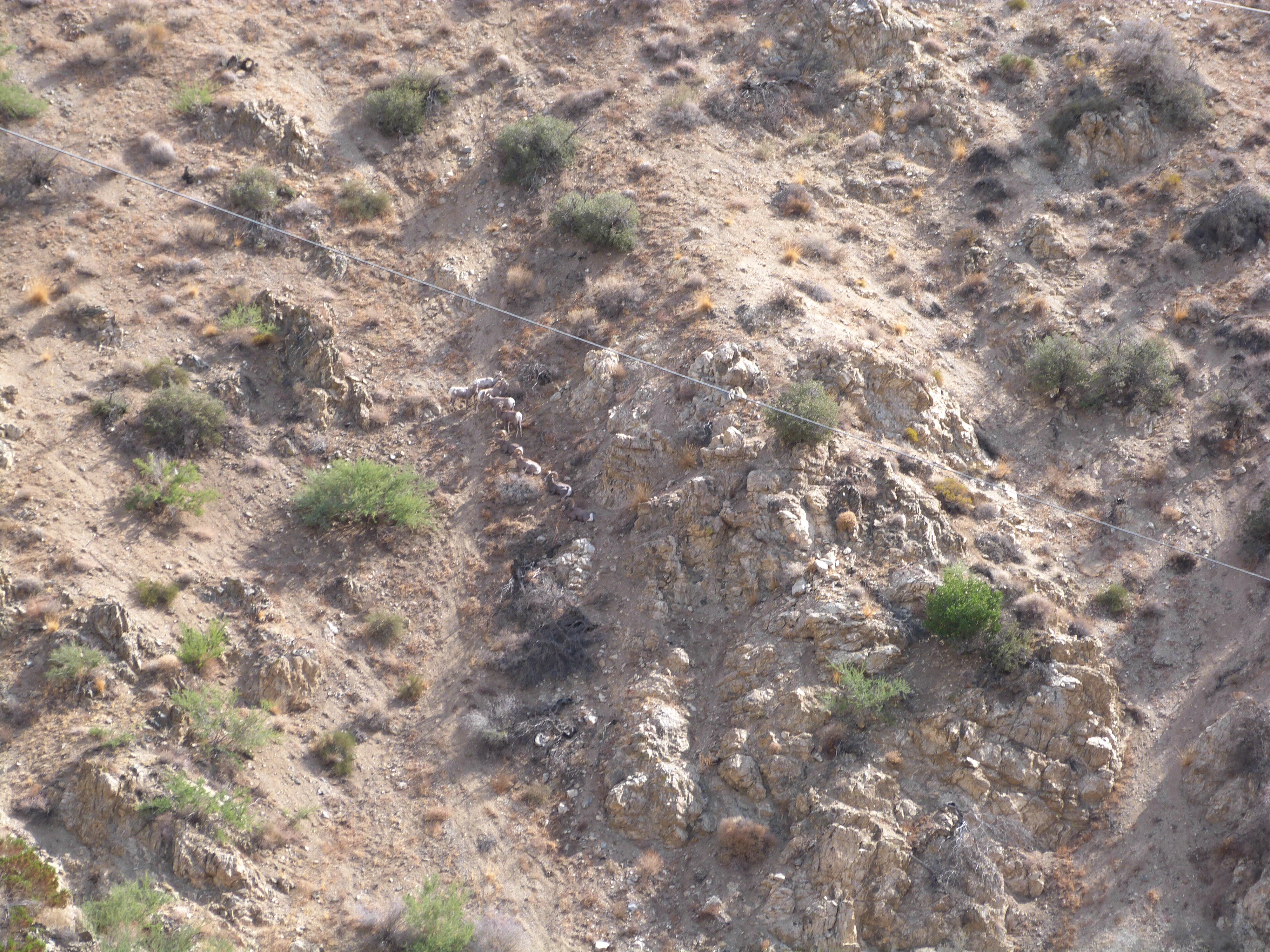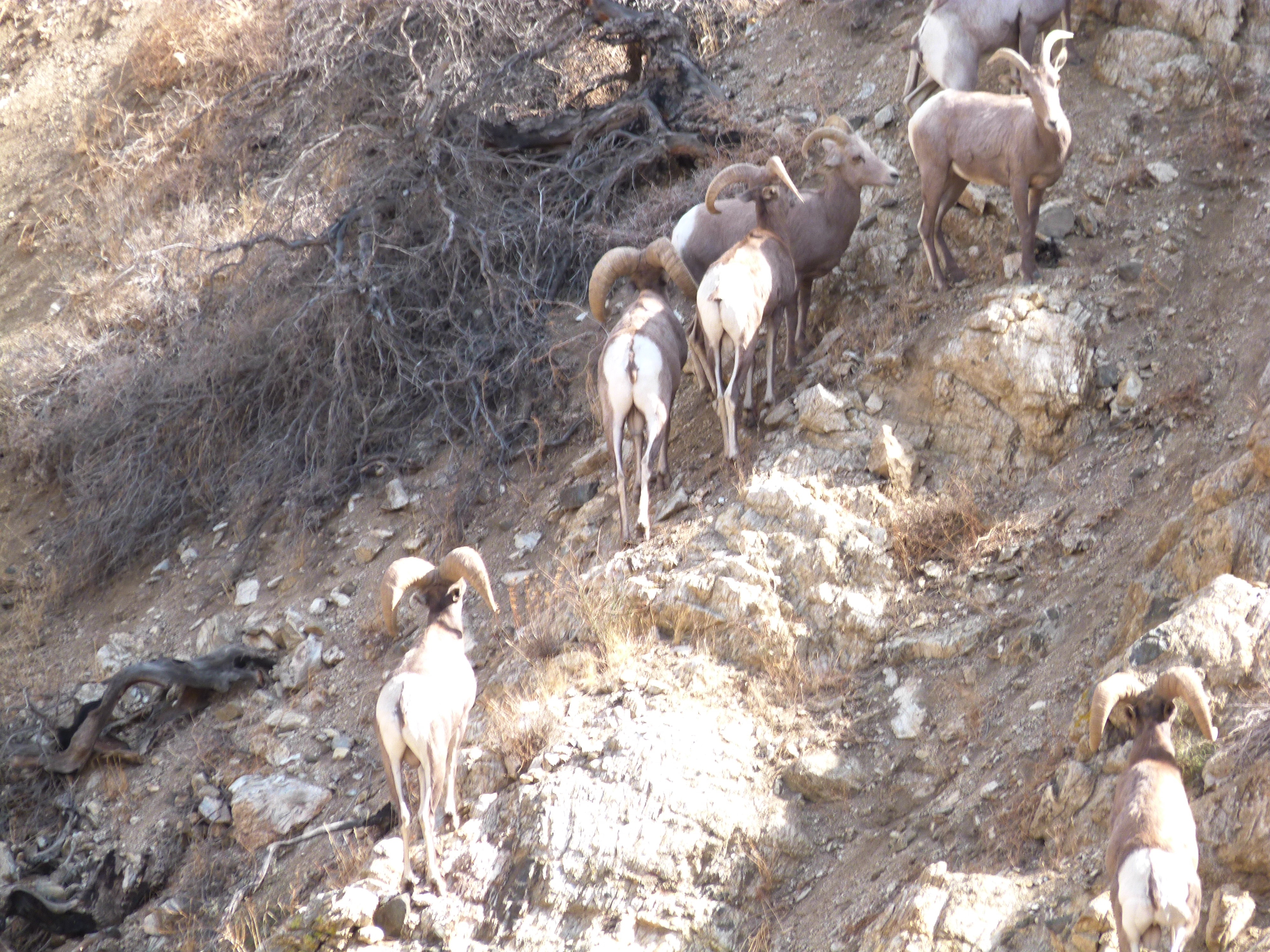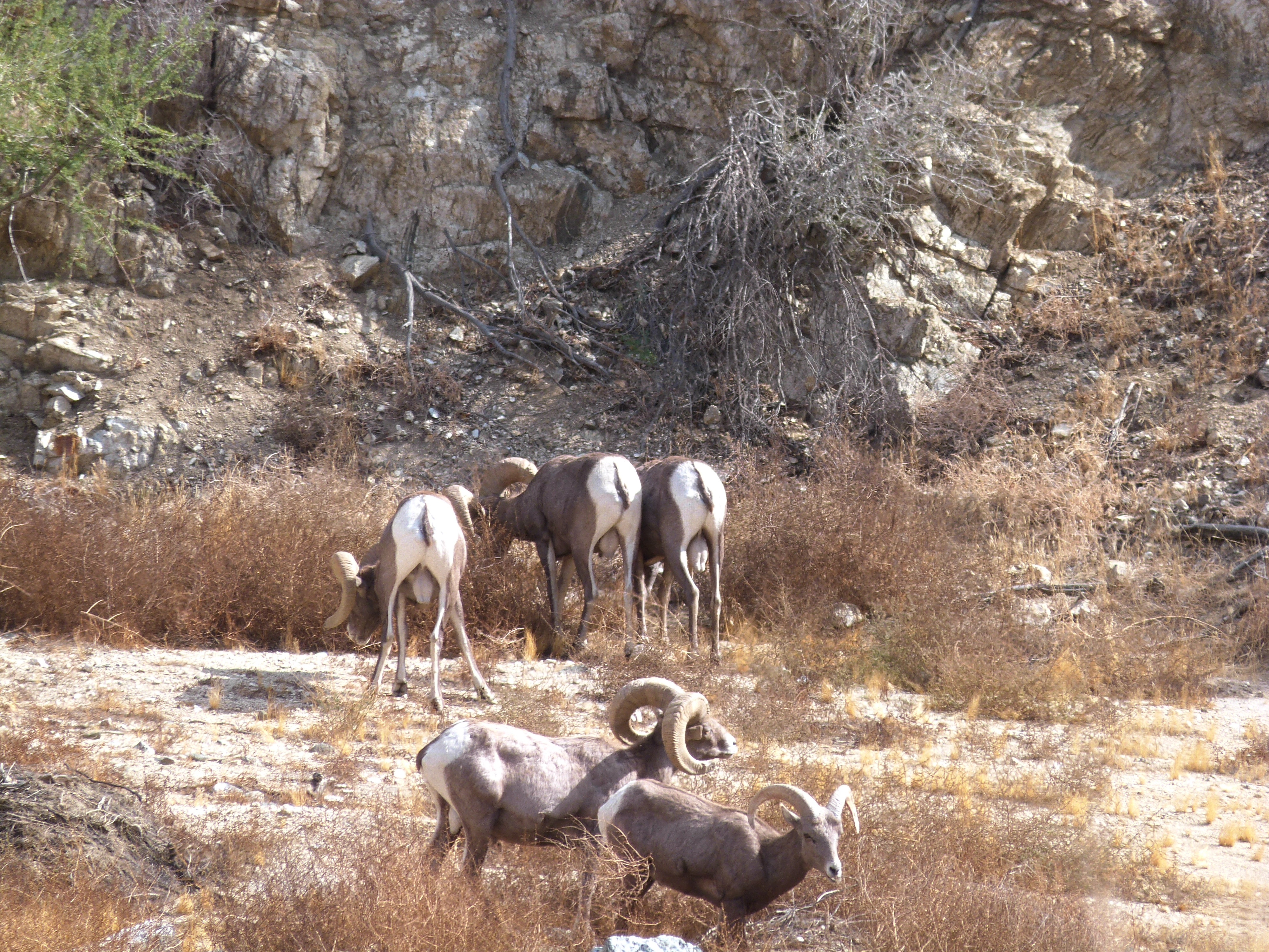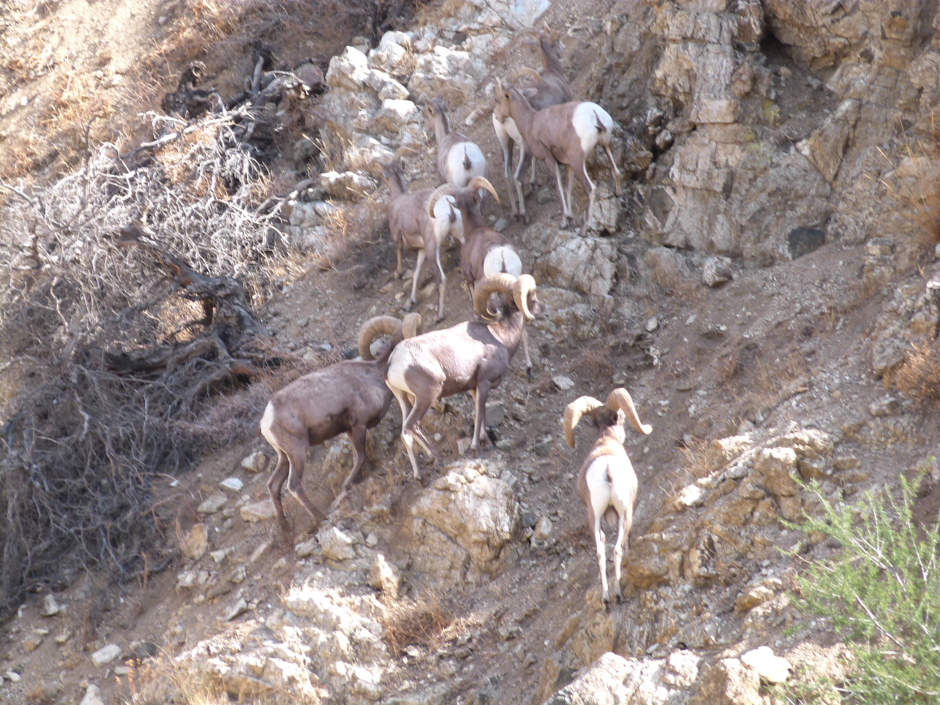 When I was a teenager working at the Yucca Valley Kentucky Fried Chicken, the owner, Mr. Shisler, once told me a story. He was driving down the Morongo Grade on Highway 62 between Yucca Valley and Desert Hot Springs when a bighorn sheep ran next to his car for a few seconds, then darted up the mountains. A few years later on a field trip in a class I was taking at College of the Desert, we traveled up Highway 74 between Palm Desert and Idyllwild and saw many agave sprouts that our professor told us had been eaten by bighorn sheep. But I still had never seen one in the wild.