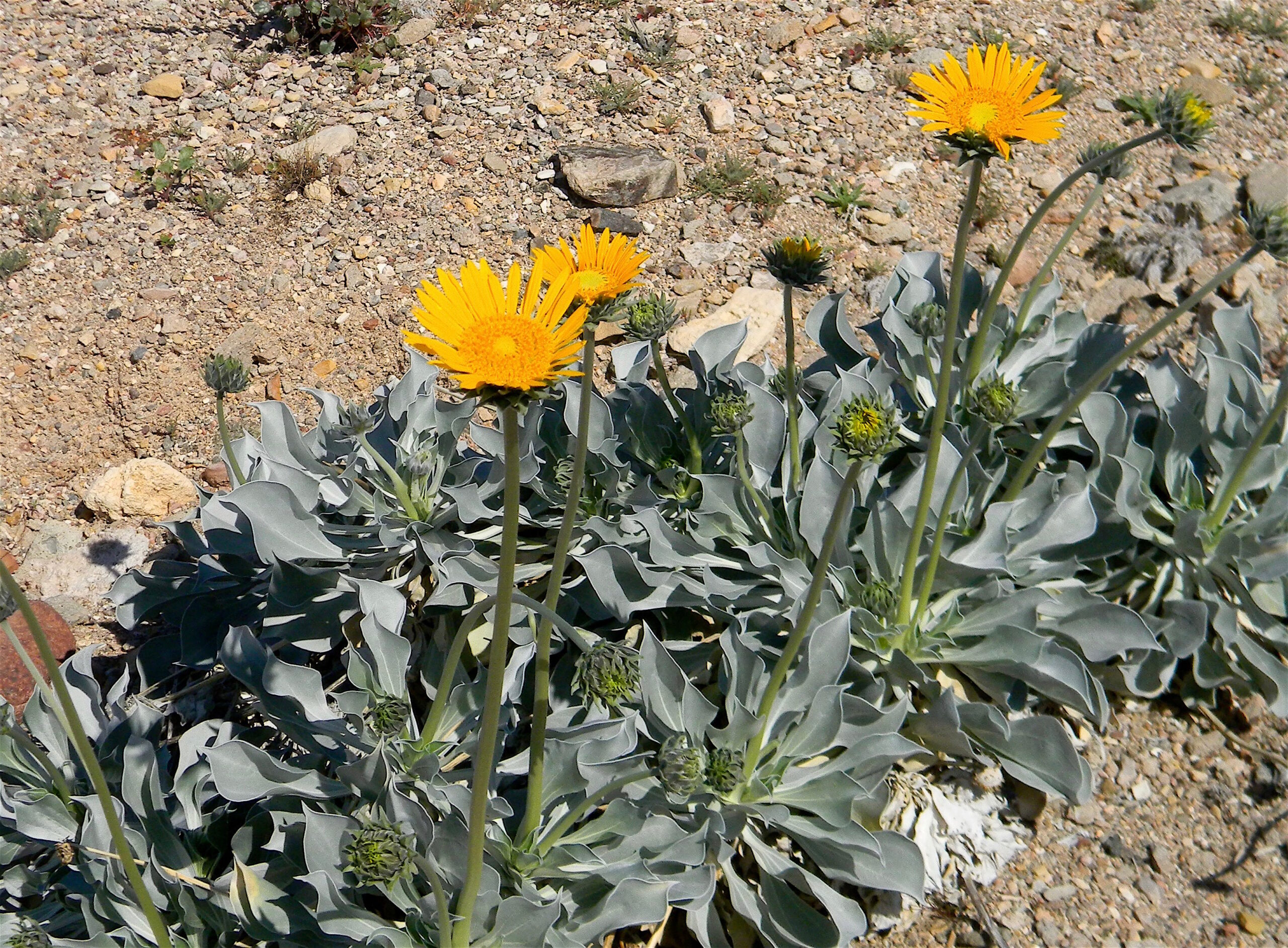 Bay Rd.. The hills have lots of green. Wildflowers are starting to bloom on the sunny hillsides. Sand Blazing Star, some phacelia, yellow bells, yellow dwarf poppies, and Silver leaf Sunrays. All the Sunrays look really healthy with lots of buds still ready to open.