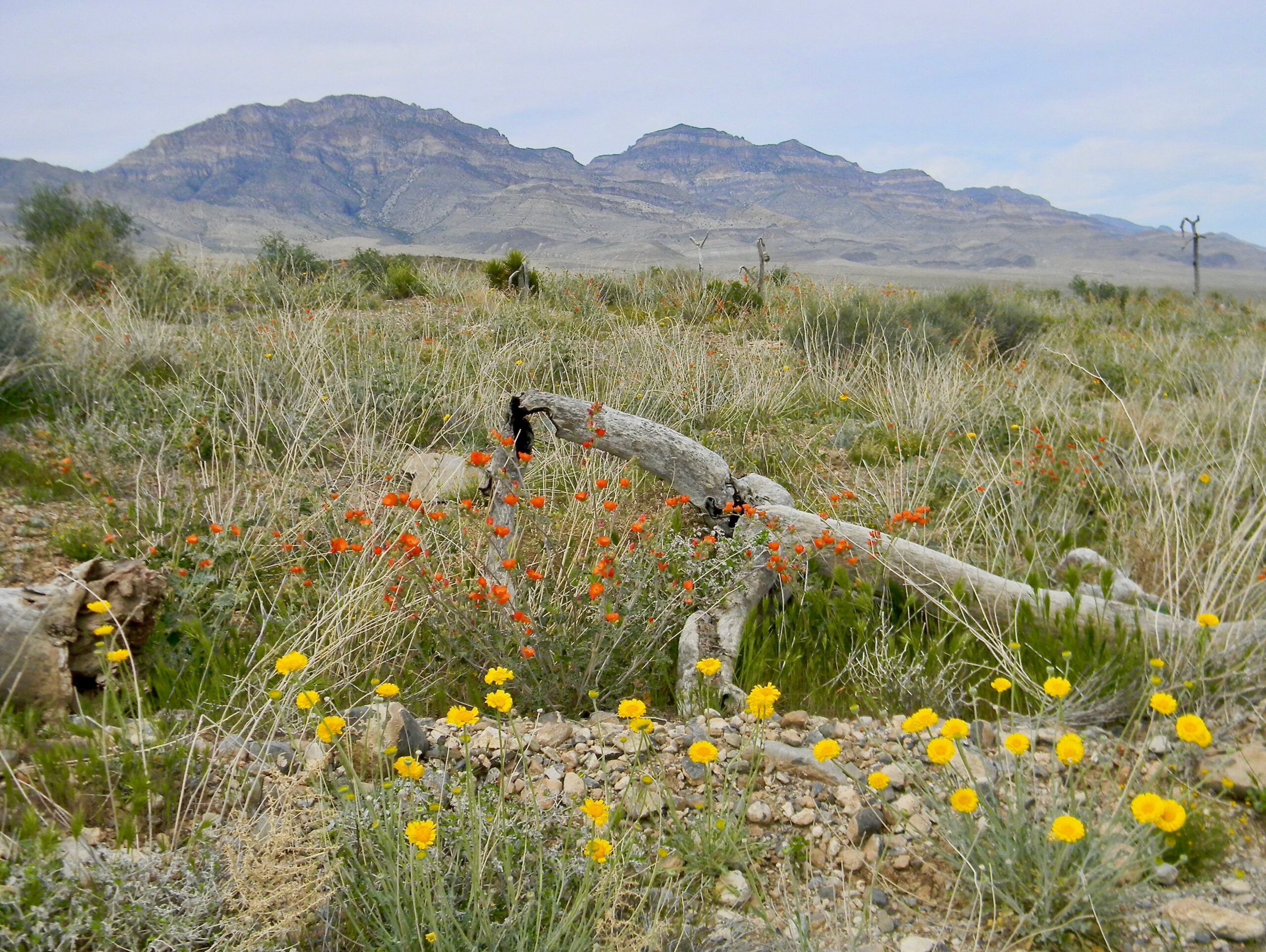 Mar 23 2026, Rick & Margarita report: We went to the Desert National Wildlife Refuge. It’s off Highway 93, on the west side, about 2 miles south of the Glendale cutoff. Where the power line crosses. There is always a nice assortment of wildflowers. The Cactus are just starting to bloom. We saw Marigolds, Globemallow, Winding Mariposa Lily, just a couple of Princes Plumes, plus a variety of others.