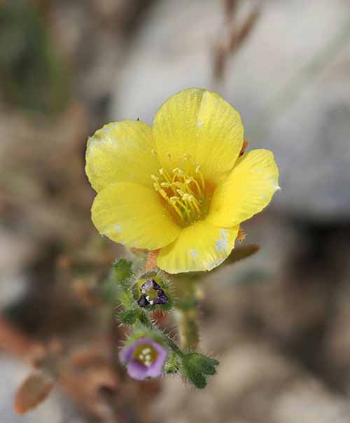 Feb 27, 2026, Rick & Margarita report: We went up Northshore Road again at Lake Mead. There were not as many flowers as I thought there would be. It’s been about 2 weeks since I took a picture of a Silver leaf SunRay on Feb. 7th. Now all its blooms are open. I saw a fair amount of purple Phacelia and a lot of Yellow Cups. A bee was quite interested in the Phacelia. I saw a very tiny 5 Spot. The tiniest one I have ever seen.