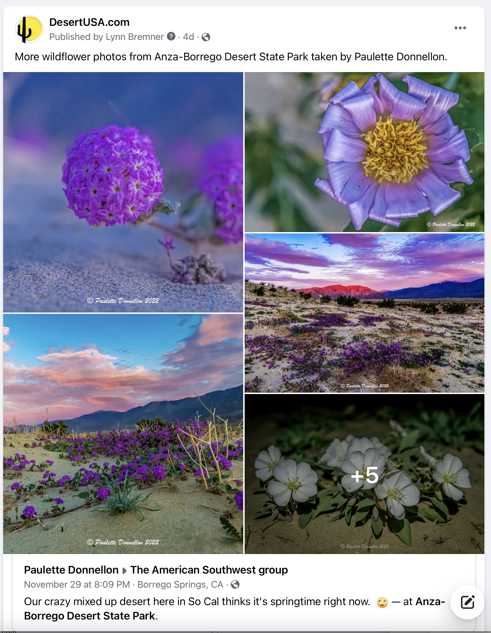 3. Share your photos and report on DesertUSA’s Wildflowers Facebook Group.