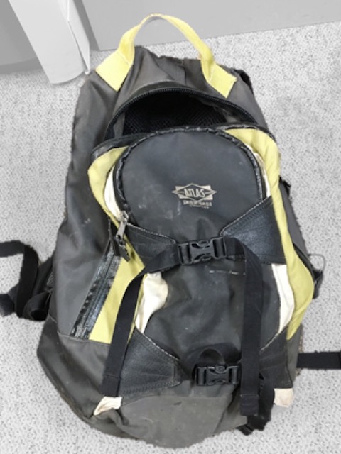 A person of interest is described as a white male, approximately 5’10” tall, who left behind a black backpack with yellow-green trim (image above).