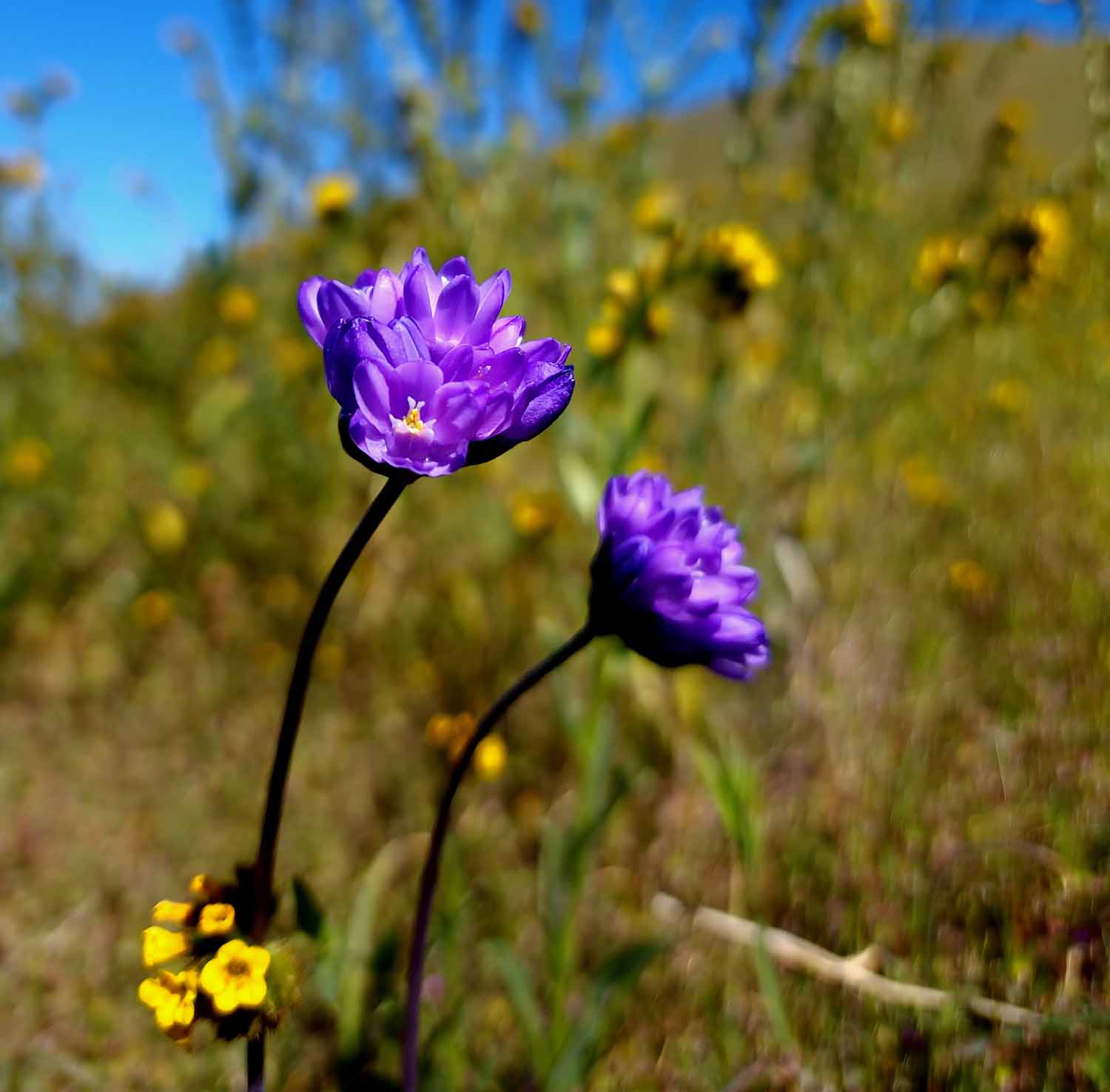 March 11, 2026, Gale Reports: These photos were taken on March 8th, 2026, near the Pearblossom Hwy on/off-ramps off of the 14 Fwy, in Palmdale, CA. Large patches of Poppies, Goldfields, and Lacy Phacelia dot the landscape & mountainside, all dominated this year by a majority of Douglas’ Fiddlenecks (the yellow, fiddlehead-like blooms shown in the background). Also seen were smatterings of Wild Hyacinths, seen here up close (my first time ever witnessing them around here!).