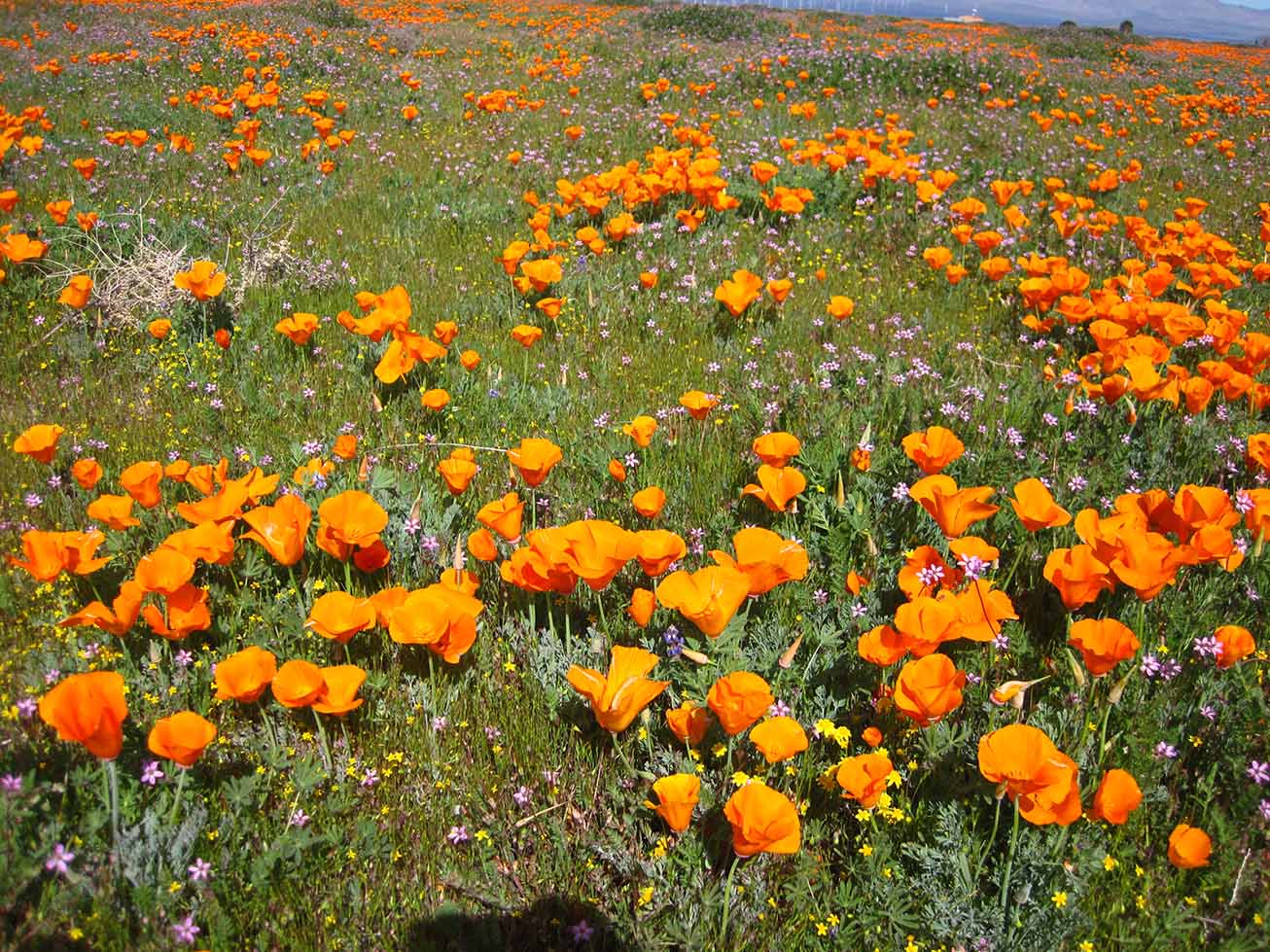 This iconic poppy reserve, home to thick blankets of California poppies (Eschscholzia californica) and other wildflowers, relies heavily on sustained winter moisture for superb fields.