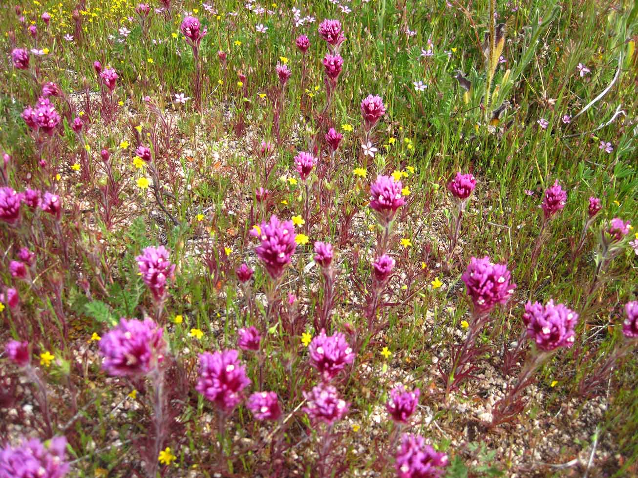 Triunfo Creek Park – ceanothus (white), purple nightshade, peonies, shooting stars, spreading phlox, mustard, monkeyflower, blue dicks, goldfields. Only the ceanothus is dense. More flowers on the Westlake Vista (reservoir) side than on the Pentachaeta side.