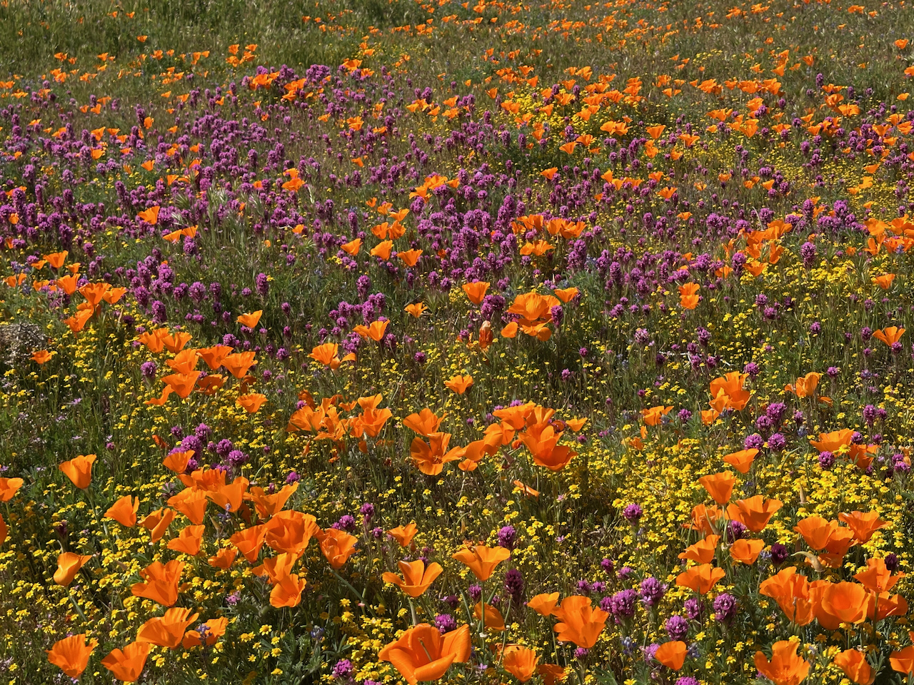 Feb 27, 2026 Donna Reports: Did an early scouting trip this morning in the Antelope Valley. Still early, but it looks like a banner year is coming with the warmer nighttime temperatures! The best poppy blooms with Lupine and Chia were along the Munoz Ranch Road. Johnson Road, off Munoz Ranch, didn’t have much yet. The promise of really good color at the Poppy Reserve is exciting. Much further west (280th), there were already some good fields as well. The north side of the 14 freeway at the pass through Acton had some nice spots as well.