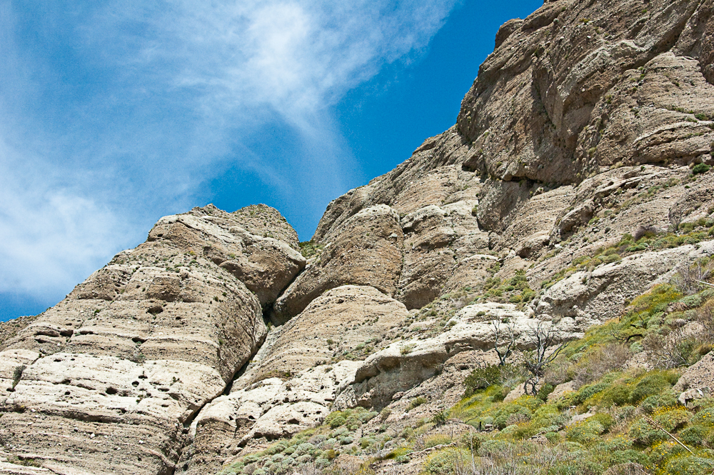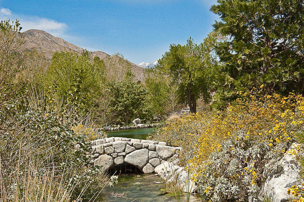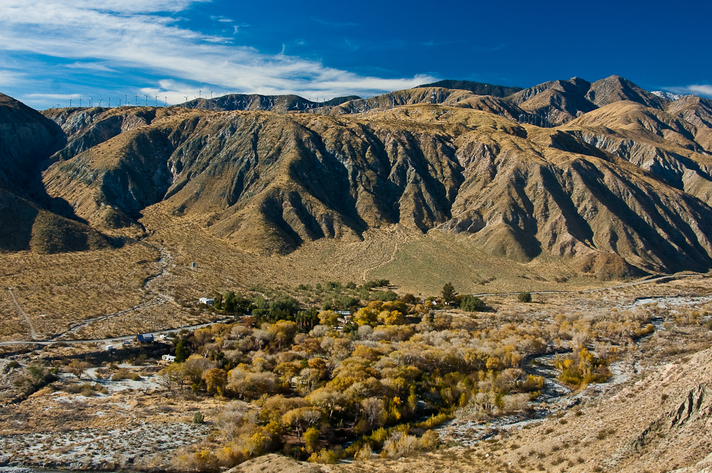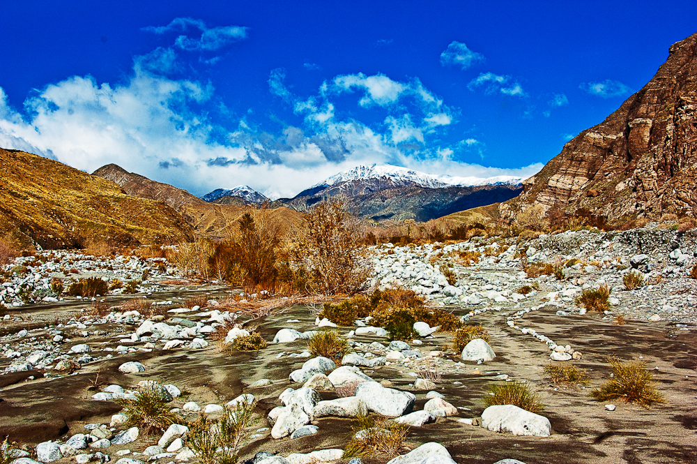 In February, 2010, I found the time to make it back to the area to explore the actual valley. I was alone. The park at the end of the road was pretty empty and a cross of the Whitewater River wash was required. Depending on seasonal snow and rain, a small waterfall may be visible in a shadow on the east side of the road after crossing the wash (inbound).