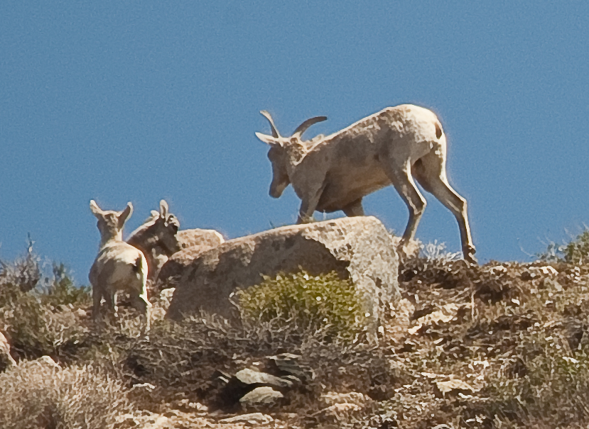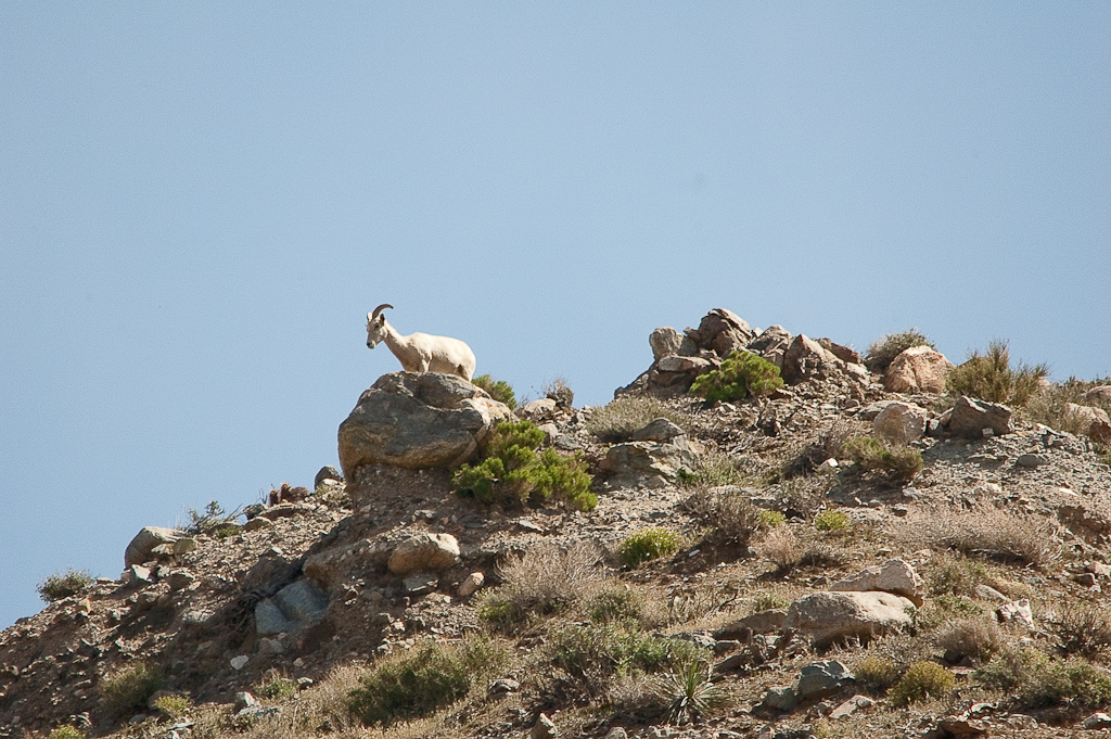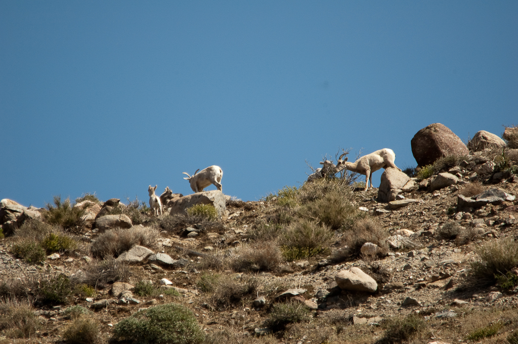 On the north side of the parking lot, is the trail head leading towards the mountains and the merger with the Pacific Crest Trail, the hiking trail extending from the Mexican border to the Canadian border, through California, Oregon, and Washington. From an easily accessible spot on the trail, we saw the bighorn sheep roaming the top of the mountains to the west about 500 feet above us.