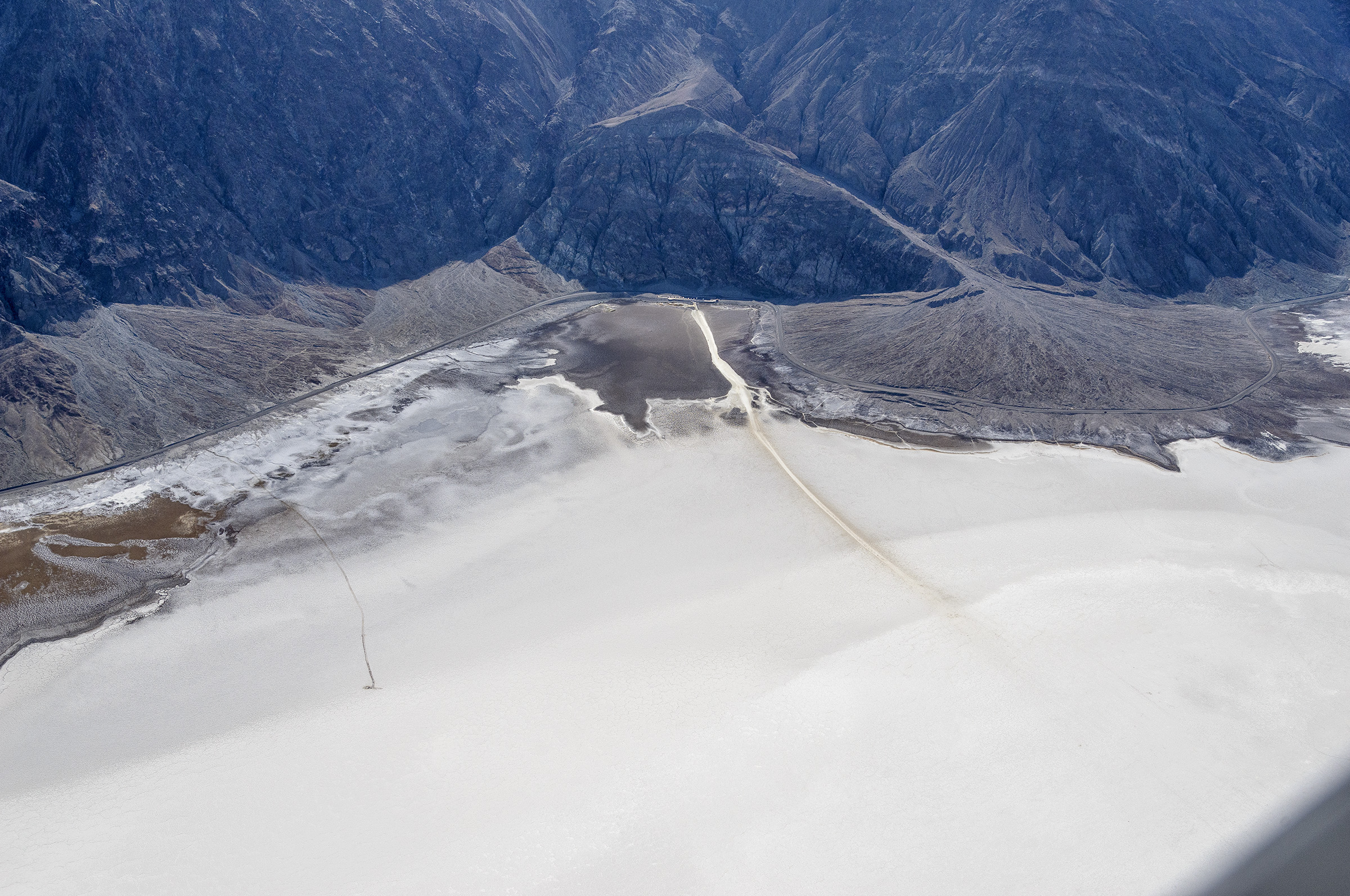 Aerial photograph of Badwater Basin taken in a prior year.  – NPS photo by Neal Nurmi