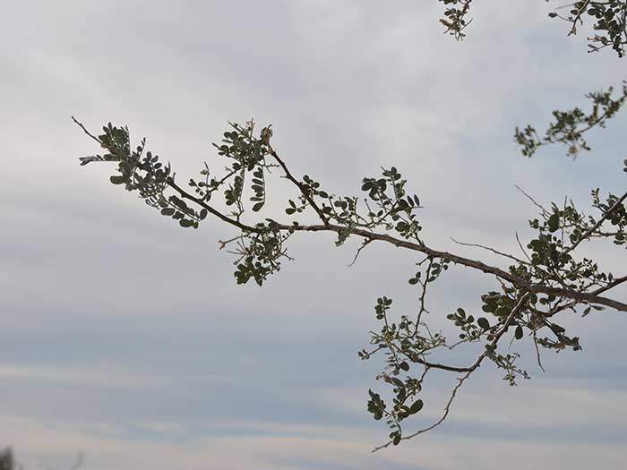 If you have forgotten your high school biology, a stroll along the natural trail may reintroduce you to one of the basic lessons of life on earth: that some organisms live off of others without contributing anything in return; this is what biologists call “parasitism.” An interpretive sign along the trail explains one such prominent example: the relationship between the desert mistletoe and desert hardwoods. The mistletoe is a plant lives off of host trees, such as palo verde or ironwood. They are a common sight along the trail and driving north along Cottonwood Springs Road. The parasite is clearly distinguishable from its host, as the former appears as a thick, dark web of vines wrapped tightly around the midsection of its host’s trunk. Upon close observation, one notices the fleshy berries hanging from the mistletoe’s vines.