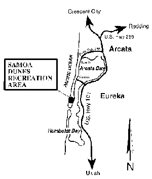 Welcome to the Samoa Dunes Recreation Area. As a visitor to this 300 acre park you may take advantage of a wide variety of recreational activities, including hiking, surfing, fishing, sightseeing, beachcombing, off-highway vehicle (OHV) use, picnicking, and birdwatching (you can view and print a long checklist of birds seen in this area). Due to the vast array of activities, it is important to respect the rights of other visitors as you enjoy your time. When walking in the recreation area please be aware of OHV riding areas.